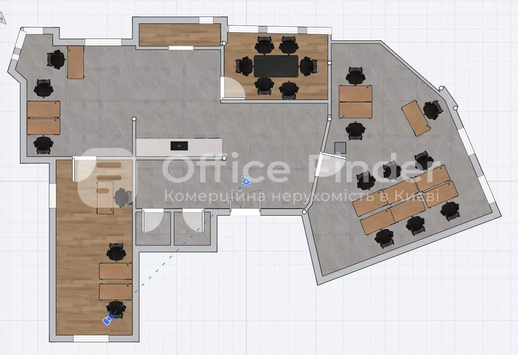 - Office layout: 2 offices, 1 conference room, kitchen, 2 bathrooms, two open balconies overlooking the street. Vozdvizhenska and Andriivskyi Uzviz.