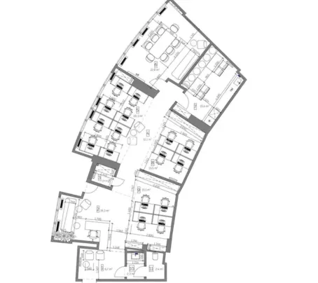 - It consists of an open space, a meeting room, 3 Skype rooms, 3 bathrooms, a kitchen-dining room, 2 recreation areas, technical premises.
