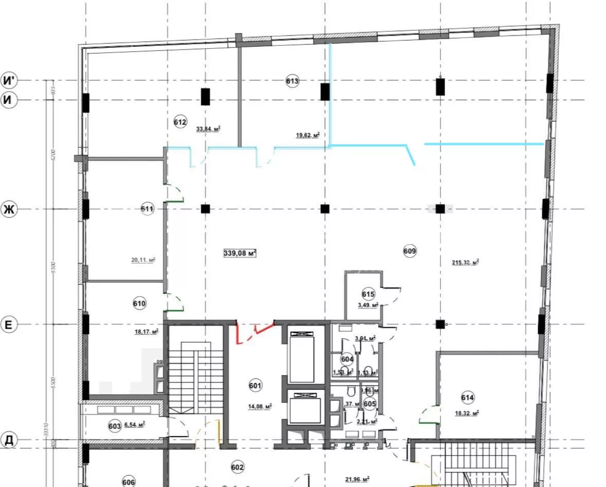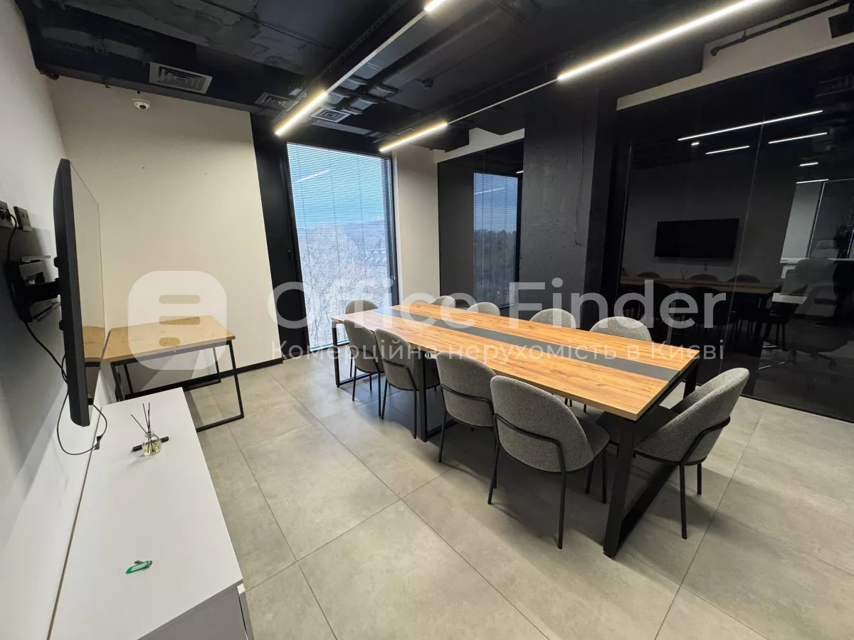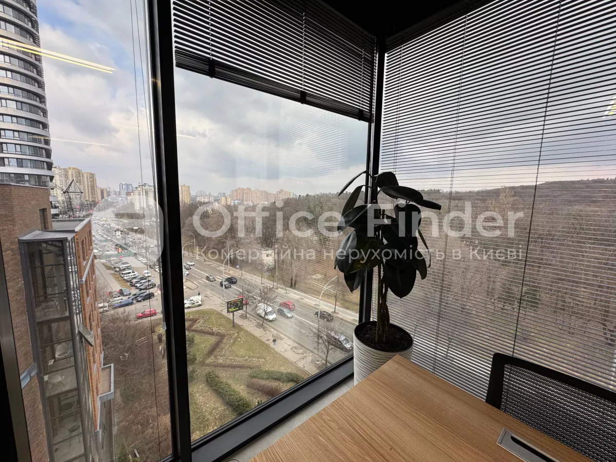 A new office is offered for rent in a modern business center with a panoramic view of Holosiivskyi Avenue.