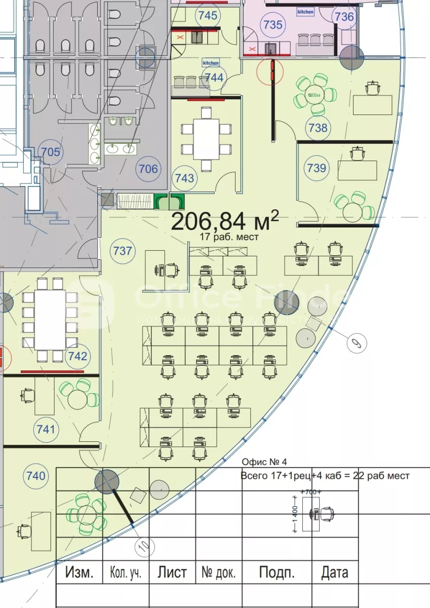 - Планировка офиса: 3 кабинета, 2 переговорные комнаты, 1-open space, кухня, 2 с/у.