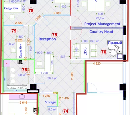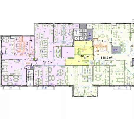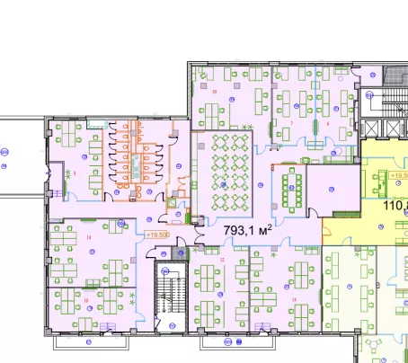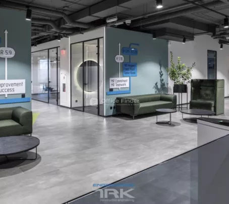 - Планування: Кабінети, переговорні кімнати, скайп-кімнати, кухня, 2 блоки санвузлів.