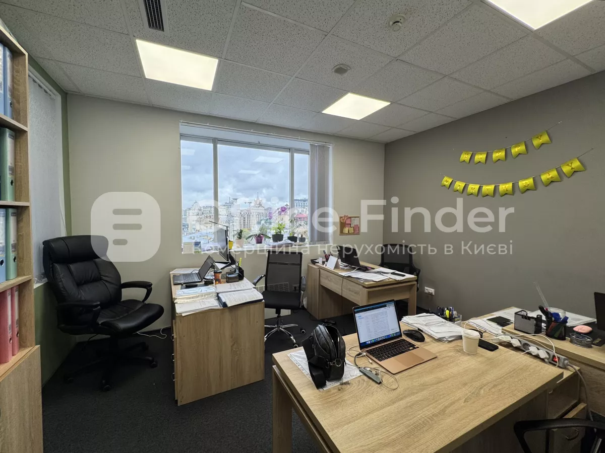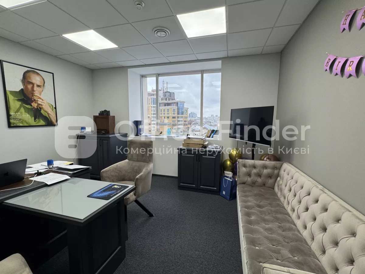 Офіс має функціональне планування, що включає приймальню, шість окремих кабінетів, простір open space, кухню та санвузол. Приміщення готове до використання, виконано якісний ремонт. З вікон відкривається панорамний вид на місто.