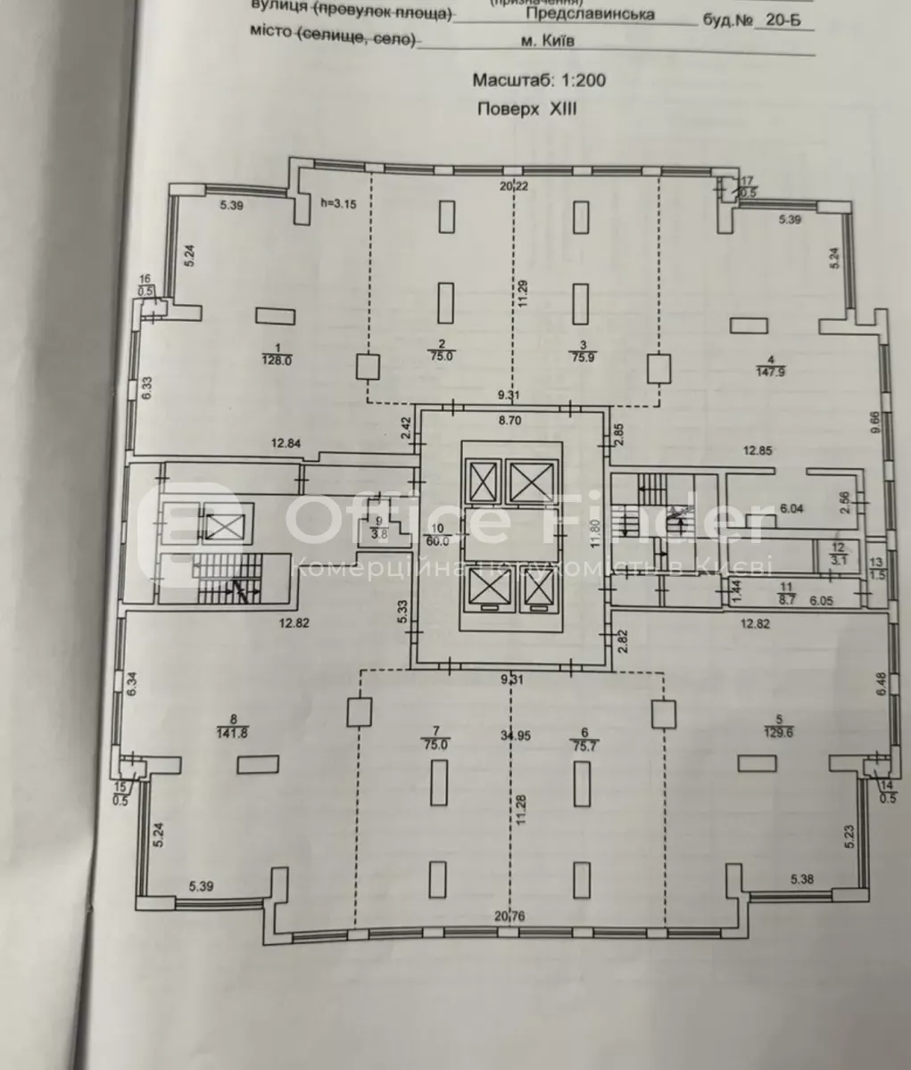 - 12–13 поверхи, друга вежа (офісна частина)