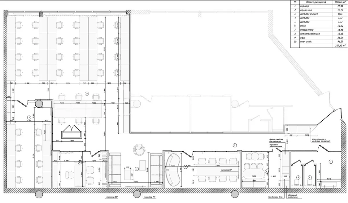 - Open space на 39 робочих місць